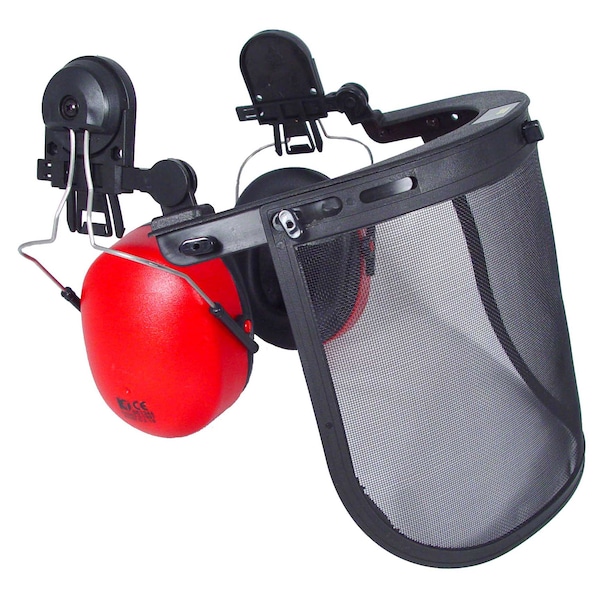 Wire mesh visor.; NRR 22db.; Fits most hard hats.