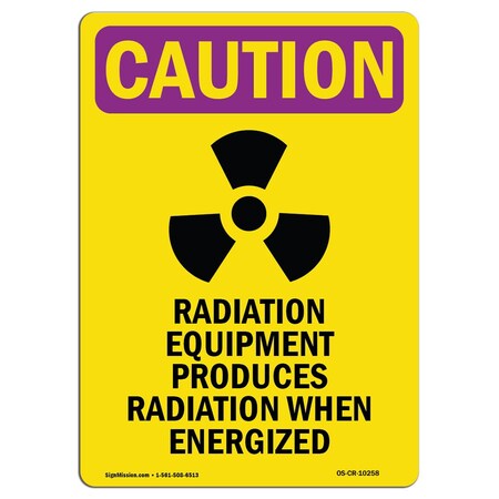 OSHA CAUTION RADIATION Sign, Radiation Equipment W/ Symbol, 7in X 5in Decal, 7" H, 5" W, Portrait