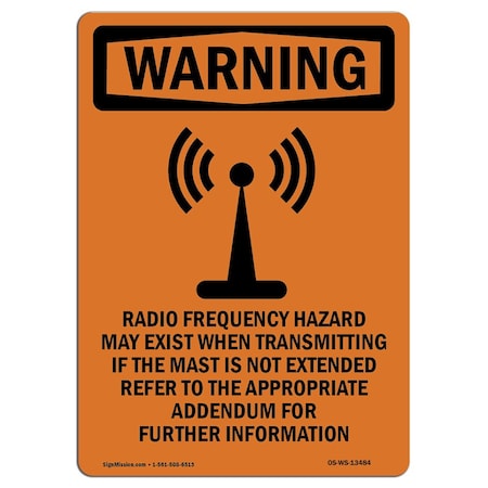OSHA Sign, Radio Frequency Hazard, 24in X 18in Decal, 18" W, 24" H, Portrait, OS-WS-D-1824-V-13483