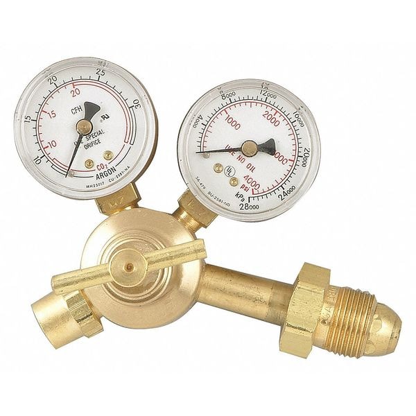 Flow Gauge Regulator, Compatible Gas Type Argon, Carbon Dioxide, Mounting Type Cylinder, Inlet Connection Gender Female, Inlet Thread Direction Right Hand, Inlet Connection Size 0.965 In.-14, Inlet Connection Type NGO, Maximum Inlet Pressure 3,000 psig, Outlet Connection Gender Female, Outlet Connection Size 5/8 In.-18, Outlet Connection Type UNF, Argon Flow Rate (Maximum) 30 scfh, Carbon Dioxide Flow Rate (Maximum) 30 scfh, Number of Stages Single Stage, Product Type Flow Gauge Regulator