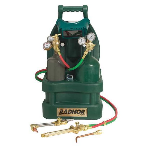 Light Duty Outfit, Compatible Fuel Type Acetylene, Kit Series Radnor, Torch Handle Model 100FC, Cutting Tip Manufacturer Part Number 0-3-101, Cutting Attachment Manufacturer Part Number CA25, Head Angle 90 Degrees , Welding and Brazing Tip Manufacturer Part Number 2-W-1, Regulator CGA Number (Fuel) CGA 200, Regulator CGA Number (Oxygen) CGA 540, Hose Length 12.5 ft, Product Type Portable Combination Torch & Tip Kit, Includes Goggles, Striker, Application Brazing, Cutting, Welding