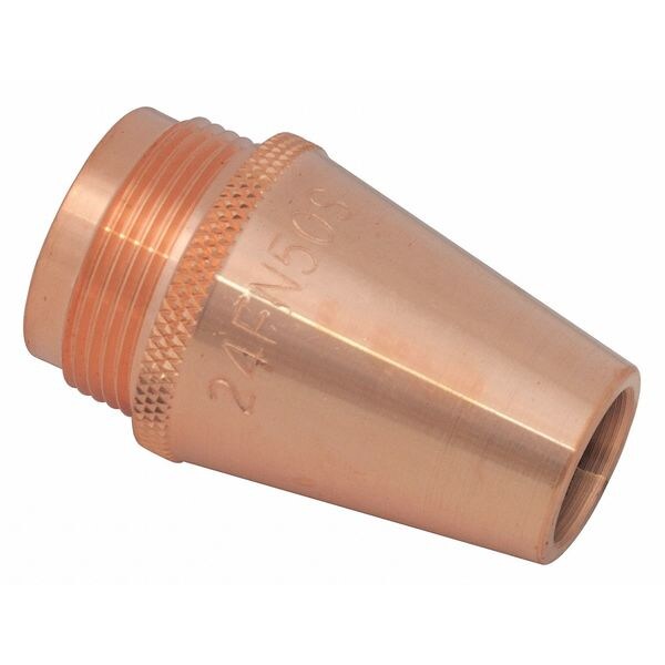 Nozzle, Compatible with Brand Radnor, Tweco, Series 24FN, Compatible with Series Tweco No. 3 and 4, Compatible with Model Radnor 400, Radnor Master 250, Radnor Master 350, Radnor Master 400, Radnor Pro 250, Radnor Pro 450, Bore Diameter 1/2 in, Connection Type Threaded, Nozzle to Tip Relationship 1/8 in Recess, Nozzle Shape Conical, Maximum Amperage 450 A, Material Copper, Duty Rating Standard Duty, Welding Processes MIG Welding (GMAW), Current Range 450 A, Application MIG Welding, Color Brass