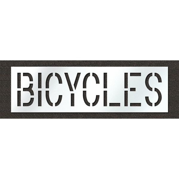 Individual Stencil, Character Type Message, Duty Heavy, FAA AC 150/5340-1K Compliant No, Font Highway Gothic, Included Characters, Messages, and Symbols Bicycles, Individual Character Height Not Applicable, Individual Character Width Not Applicable, Interlocking No, Interlocking Orientation Not Applicable, Material Polyethylene, Message or Symbol Height 18 in, Message or Symbol Width 76 in, Number of Pieces 1, Overall Stencil Height 24 in, Overall Stencil Thickness 0.125 in
