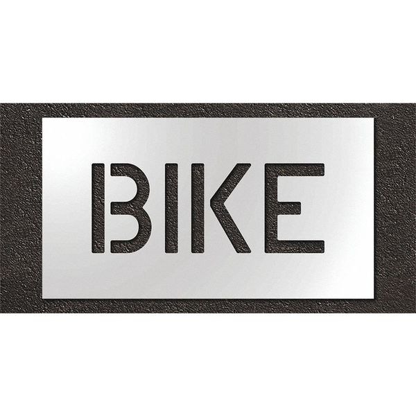 Individual Stencil, Character Type Message, Duty Heavy, FAA AC 150/5340-1K Compliant No, Font Highway Gothic, Included Characters, Messages, and Symbols Bike, Individual Character Height Not Applicable, Individual Character Width Not Applicable, Interlocking No, Interlocking Orientation Not Applicable, Material Polyethylene, Message or Symbol Height 6 in, Message or Symbol Width 15 in, Number of Pieces 1, Overall Stencil Height 12 in, Overall Stencil Thickness 0.125 in