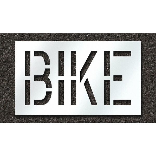 Individual Stencil, Character Type Message, Duty Heavy, FAA AC 150/5340-1K Compliant No, Font Highway Gothic, Included Characters, Messages, and Symbols Bike, Individual Character Height Not Applicable, Individual Character Width Not Applicable, Interlocking No, Interlocking Orientation Not Applicable, Material Polyethylene, Message or Symbol Height 18 in, Message or Symbol Width 35 in, Number of Pieces 1, Overall Stencil Height 24 in, Overall Stencil Thickness 0.125 in