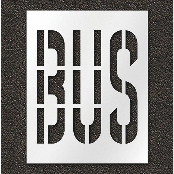 Individual Stencil, Character Type Message, Duty Heavy, FAA AC 150/5340-1K Compliant No, Font Highway Gothic, Included Characters, Messages, and Symbols Bus, Individual Character Height Not Applicable, Individual Character Width Not Applicable, Interlocking No, Interlocking Orientation Not Applicable, Material Polyethylene, Message or Symbol Height 36 in, Message or Symbol Width 32 in, Number of Pieces 1, Overall Stencil Height 48 in, Overall Stencil Thickness 0.125 in