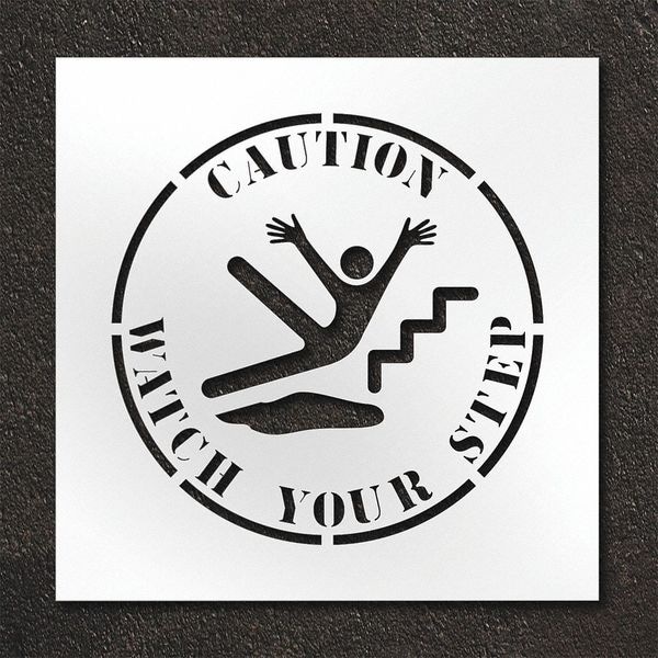 Individual Stencil, Character Type Message, Duty Heavy, FAA AC 150/5340-1K Compliant No, Included Characters, Messages, and Symbols Caution Watch Your Step, Includes Caution Watch Your Step, Individual Character Height Not Applicable, Individual Character Width Not Applicable, Interlocking No, Interlocking Orientation Not Applicable, Material Low Density Polyethylene (LDPE), Message or Symbol Height 24 in, Message or Symbol Width 24 in, Number of Pieces 1, Overall Stencil Height 30 in