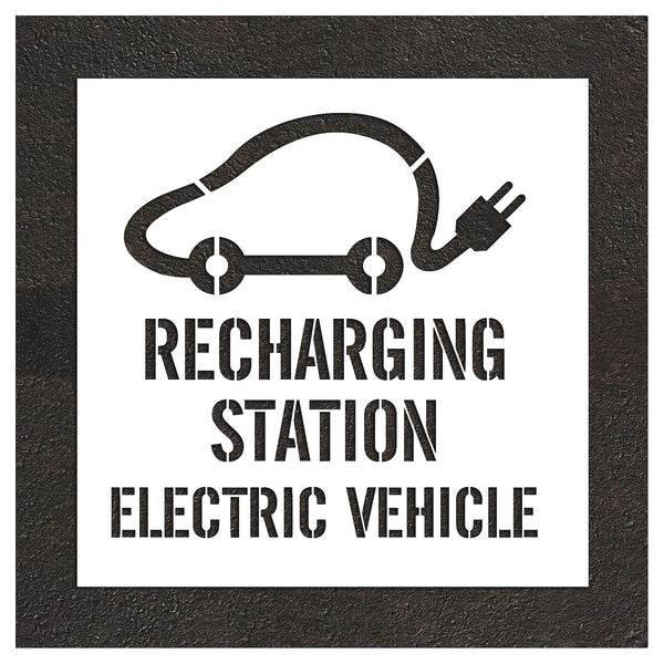 Pavement Stencil, Combination Set, Electric Car Logo, 36 in Character Height, White, 2 Pieces