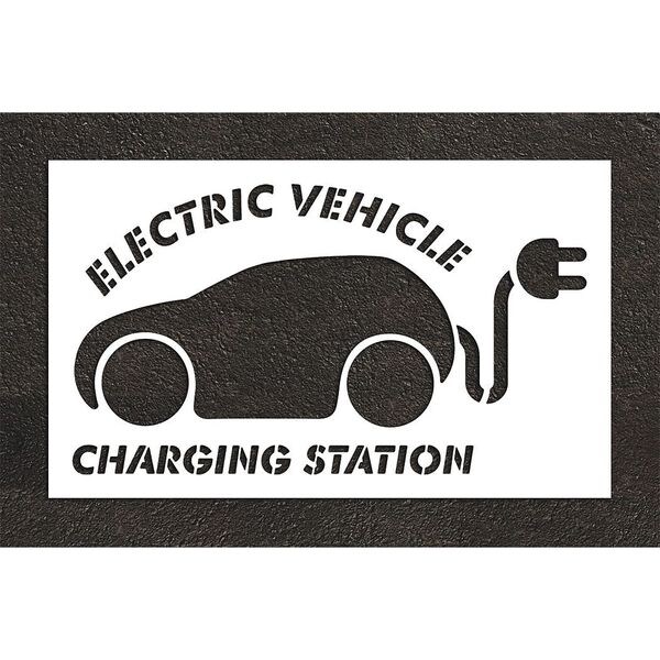 Pavement Stencil, Combination Set, Electric Car Logo, 48 in Character Height, White, 1 Pieces