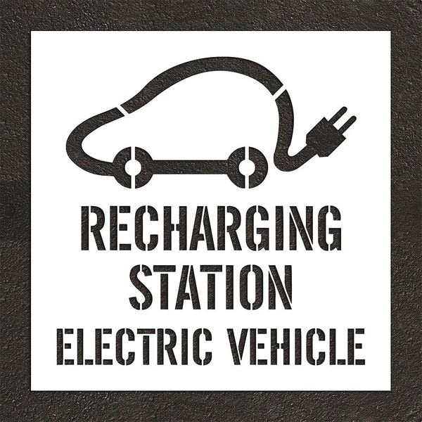 Pavement Stencil, Combination Set, Electric Car Logo, 48 in Character Height, White, 1 Pieces