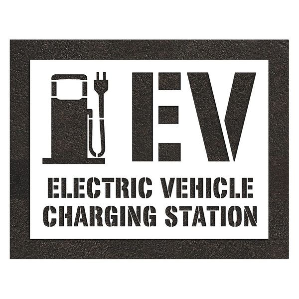 Pavement Stencil, Combination Set, Electric Car Logo, 52 in Character Height, White, 1 Pieces