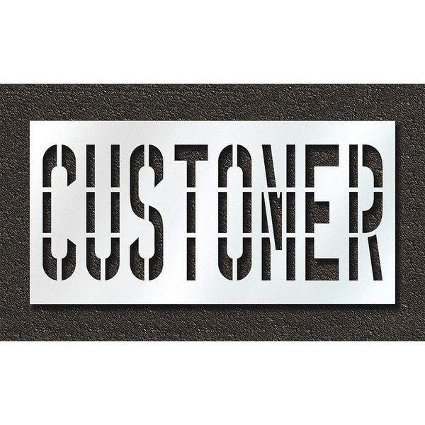 Individual Stencil, Character Type Message, Duty Heavy, FAA AC 150/5340-1K Compliant No, Font Highway Gothic, Included Characters, Messages, and Symbols Customer, Individual Character Height Not Applicable, Individual Character Width Not Applicable, Interlocking No, Interlocking Orientation Not Applicable, Material Polyethylene, Message or Symbol Height 36 in, Message or Symbol Width 90 in, Number of Pieces 1, Overall Stencil Height 48 in, Overall Stencil Thickness 0.125 in