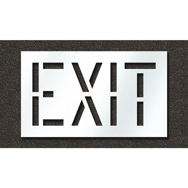 Individual Stencil, Character Type Message, Duty Heavy, FAA AC 150/5340-1K Compliant No, Font Highway Gothic, Included Characters, Messages, and Symbols Exit, Individual Character Height Not Applicable, Individual Character Width Not Applicable, Interlocking No, Interlocking Orientation Not Applicable, Material Polyethylene, Message or Symbol Height 18 in, Message or Symbol Width 35 in, Number of Pieces 1, Overall Stencil Height 24 in, Overall Stencil Thickness 0.125 in