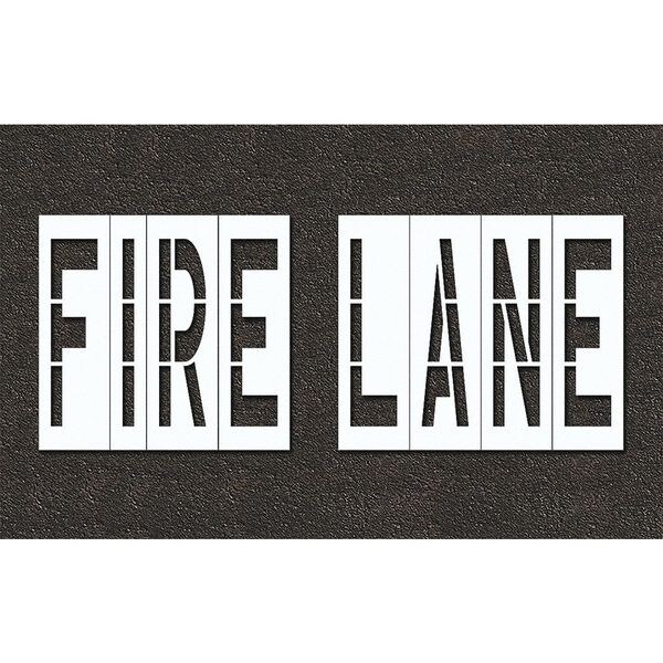 Individual Stencil, Character Type Message, Duty Heavy, FAA AC 150/5340-1K Compliant No, Font Highway Gothic, Included Characters, Messages, and Symbols Fire Lane, Individual Character Height Not Applicable, Individual Character Width Not Applicable, Interlocking No, Interlocking Orientation Not Applicable, Material Polyethylene, Message or Symbol Height 48 in, Message or Symbol Width 129 in, Number of Pieces 1, Overall Stencil Height 60 in, Overall Stencil Thickness 0.125 in