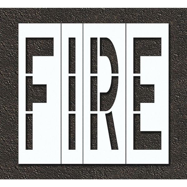 Individual Stencil, Character Type Message, Duty Heavy, FAA AC 150/5340-1K Compliant No, Font Highway Gothic, Included Characters, Messages, and Symbols Fire, Individual Character Height Not Applicable, Individual Character Width Not Applicable, Interlocking No, Interlocking Orientation Not Applicable, Material Polyethylene, Message or Symbol Height 48 in, Message or Symbol Width 57 in, Number of Pieces 1, Overall Stencil Height 60 in, Overall Stencil Thickness 0.125 in