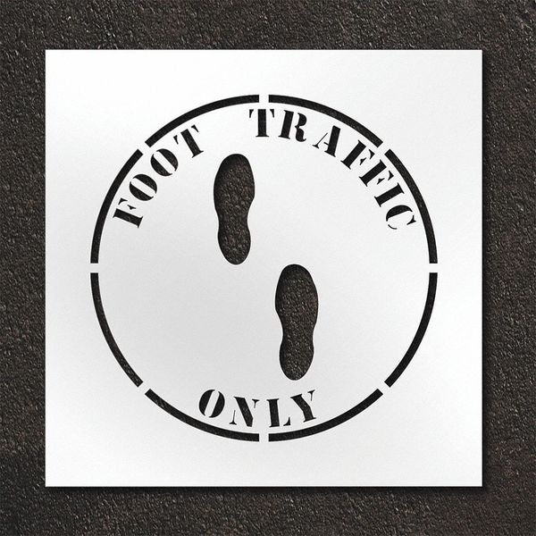 Individual Stencil, Character Type Message, Duty Heavy, FAA AC 150/5340-1K Compliant No, Included Characters, Messages, and Symbols Foot Traffic Only, Includes Foot Traffic Only, Individual Character Height Not Applicable, Individual Character Width Not Applicable, Interlocking No, Interlocking Orientation Not Applicable, Material Low Density Polyethylene (LDPE), Message or Symbol Height 24 in, Message or Symbol Width 24 in, Number of Pieces 1, Overall Stencil Height 30 in