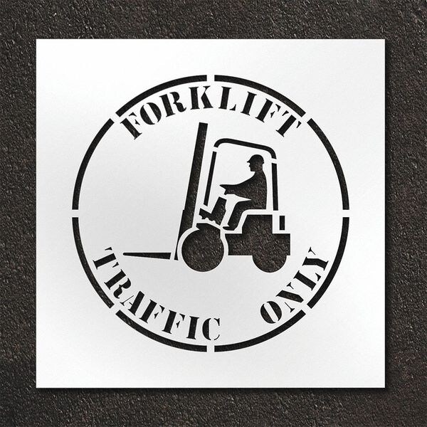 Individual Stencil, Character Type Message, Duty Heavy, FAA AC 150/5340-1K Compliant No, Included Characters, Messages, and Symbols Forklift Traffic Only, Includes Forklift Traffic Only, Individual Character Height Not Applicable, Individual Character Width Not Applicable, Interlocking No, Interlocking Orientation Not Applicable, Material Low Density Polyethylene (LDPE), Message or Symbol Height 24 in, Message or Symbol Width 24 in, Number of Pieces 1, Overall Stencil Height 30 in