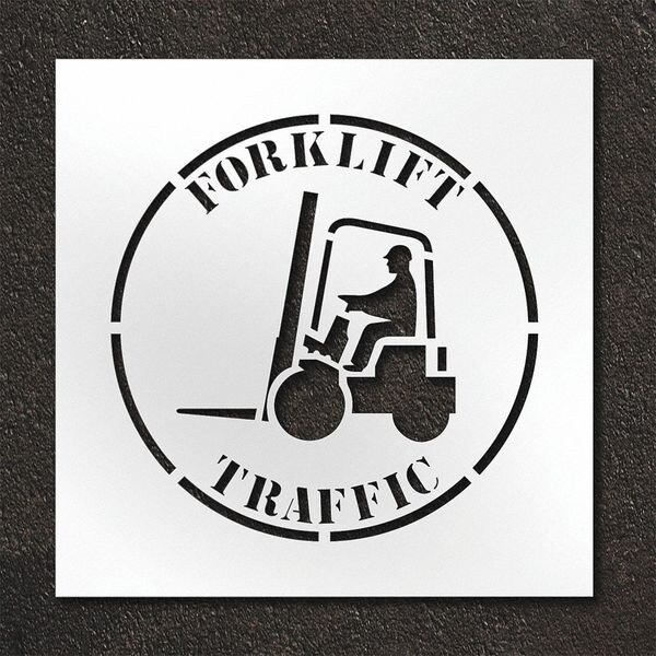 Individual Stencil, Character Type Message, Duty Heavy, FAA AC 150/5340-1K Compliant No, Included Characters, Messages, and Symbols Forklift Traffic, Includes Forklift Traffic, Individual Character Height Not Applicable, Individual Character Width Not Applicable, Interlocking No, Interlocking Orientation Not Applicable, Material Low Density Polyethylene (LDPE), Message or Symbol Height 24 in, Message or Symbol Width 24 in, Number of Pieces 1, Overall Stencil Height 30 in