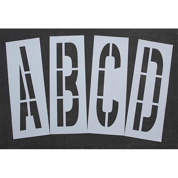 Pavement Stencil, Letter Set, A Thru Z, Blanks, 48 in Character Height, Highway Gothic Font, Clear