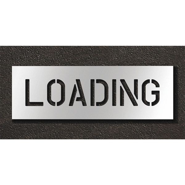 Individual Stencil, Character Type Message, Duty Heavy, FAA AC 150/5340-1K Compliant No, Font Highway Gothic, Included Characters, Messages, and Symbols Loading, Individual Character Height Not Applicable, Individual Character Width Not Applicable, Interlocking No, Interlocking Orientation Not Applicable, Material Polyethylene, Message or Symbol Height 6 in, Message or Symbol Width 30 in, Number of Pieces 1, Overall Stencil Height 12 in, Overall Stencil Thickness 0.125 in