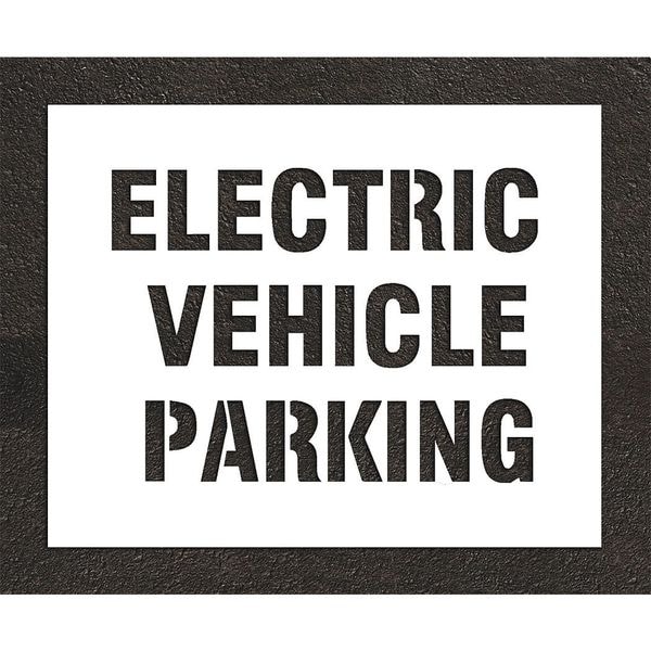 Pavement Stencil, Message, Electric Car Logo, 14 in Character Height, Highway Gothic Font, White