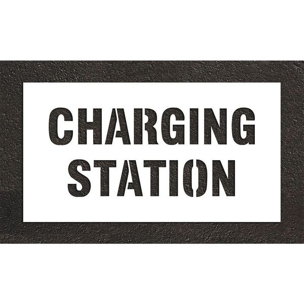 Pavement Stencil, Message, Electric Car Logo, 14 in Character Height, Highway Gothic Font, White