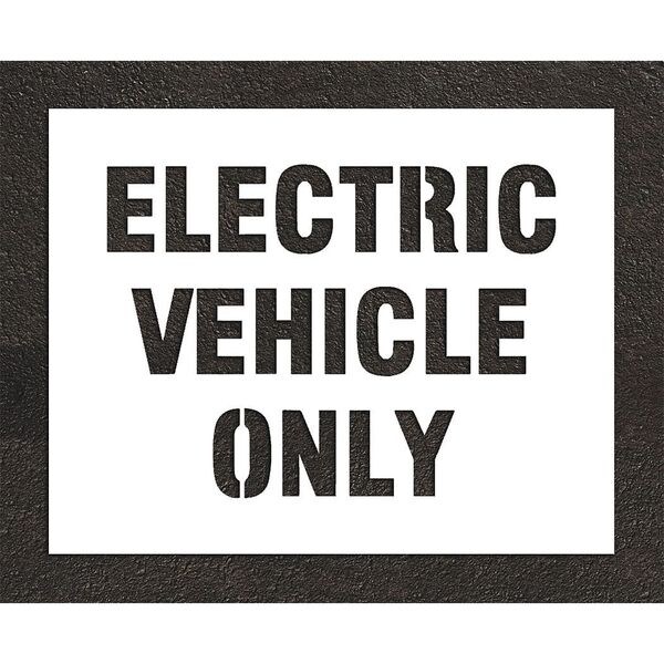 Pavement Stencil, Message, Electric Car Logo, 22 in Character Height, Highway Gothic Font, White