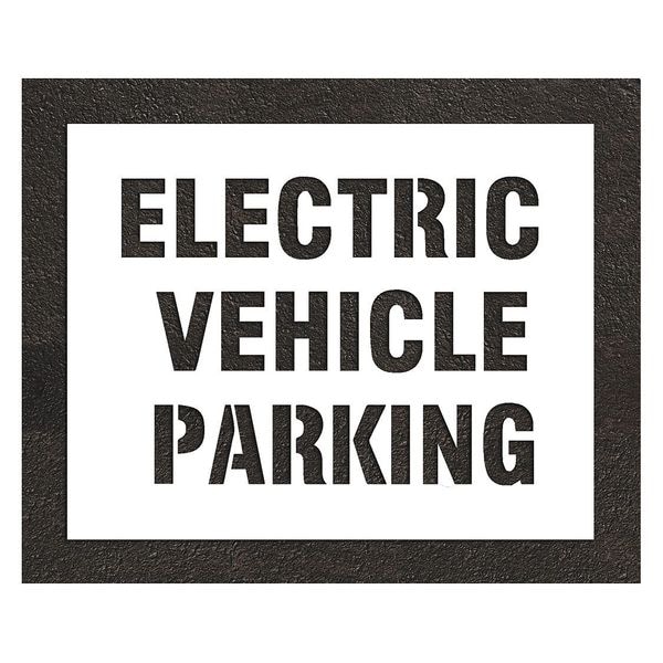 Pavement Stencil, Message, Electric Car Logo, 22 in Character Height, Highway Gothic Font, White