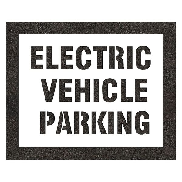 Pavement Stencil, Message, Electric Car Logo, 29 in Character Height, Highway Gothic Font, White