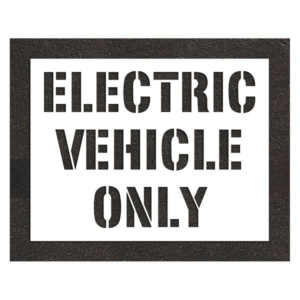 Pavement Stencil, Message, Electric Car Logo, 47 in Character Height, Highway Gothic Font, White
