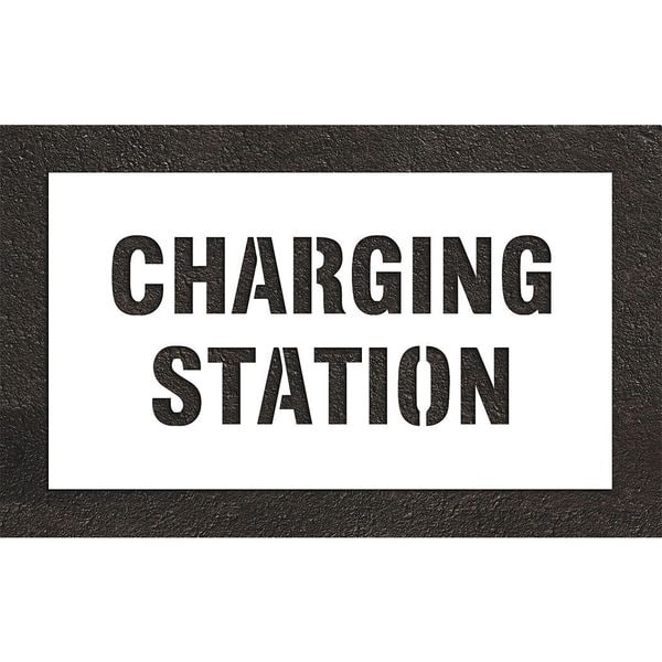 Pavement Stencil, Message, Electric Car Logo, 9 in Character Height, Highway Gothic Font, White
