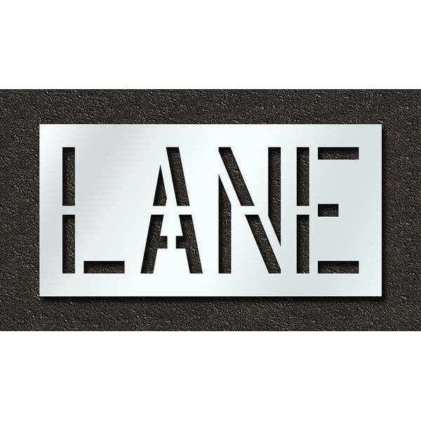 Pavement Stencil, Message, Lane, 18 in Character Height, Highway Gothic Font, Polyethylene, Clear