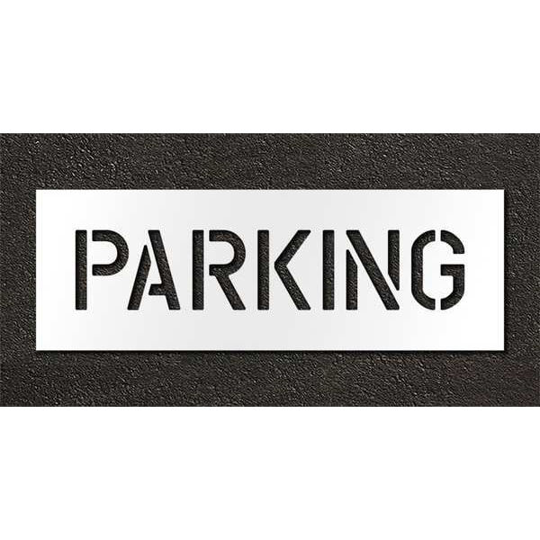 Individual Stencil, Character Type Message, Duty Light, FAA AC 150/5340-1K Compliant No, Font Highway Gothic, Included Characters, Messages, and Symbols Parking, Individual Character Height Not Applicable, Individual Character Width Not Applicable, Interlocking No, Interlocking Orientation Not Applicable, Material Polyethylene, Message or Symbol Height 6 in, Message or Symbol Width 29 in, Number of Pieces 1, Overall Stencil Height 12 in, Overall Stencil Thickness 0.063 in