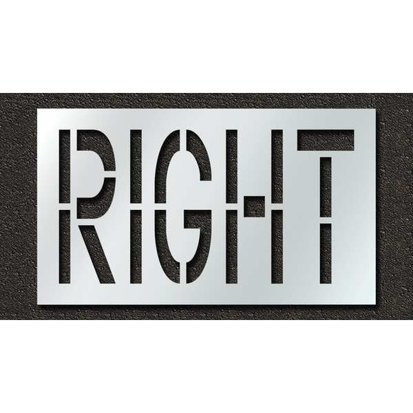 Individual Stencil, Character Type Message, Duty Light, FAA AC 150/5340-1K Compliant No, Font Highway Gothic, Included Characters, Messages, and Symbols Right, Individual Character Height Not Applicable, Individual Character Width Not Applicable, Interlocking No, Interlocking Orientation Not Applicable, Material Polyethylene, Message or Symbol Height 24 in, Message or Symbol Width 46 in, MUTCD Compliant Yes, Number of Pieces 1, Overall Stencil Height 30 in, Overall Stencil Thickness 0.063 in