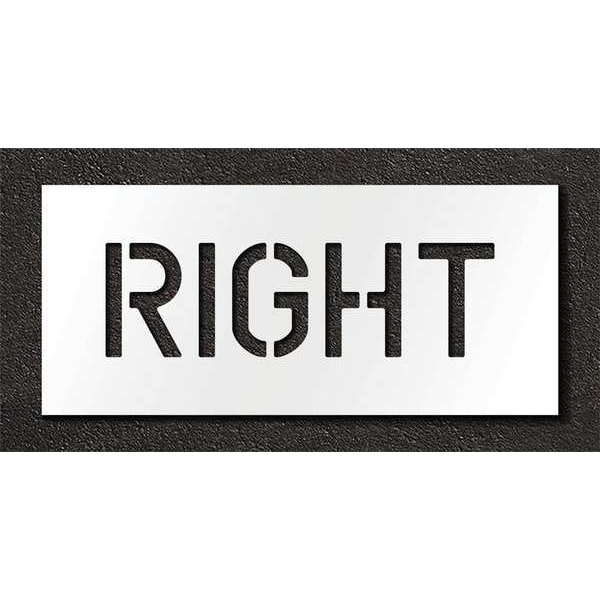 Individual Stencil, Character Type Message, Duty Light, FAA AC 150/5340-1K Compliant No, Font Highway Gothic, Included Characters, Messages, and Symbols Right, Individual Character Height Not Applicable, Individual Character Width Not Applicable, Interlocking No, Interlocking Orientation Not Applicable, Material Polyethylene, Message or Symbol Height 6 in, Message or Symbol Width 20 in, Number of Pieces 1, Overall Stencil Height 12 in, Overall Stencil Thickness 0.063 in