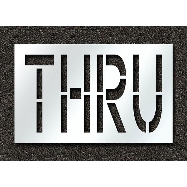 Individual Stencil, Character Type Message, Duty Light, FAA AC 150/5340-1K Compliant No, Font Highway Gothic, Included Characters, Messages, and Symbols Thru, Individual Character Height Not Applicable, Individual Character Width Not Applicable, Interlocking No, Interlocking Orientation Not Applicable, Material Polyethylene, Message or Symbol Height 24 in, Message or Symbol Width 42 in, Number of Pieces 1, Overall Stencil Height 30 in, Overall Stencil Thickness 0.063 in
