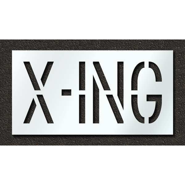 Pavement Stencil, Message, X-ing, 18 in Character Height, Highway Gothic Font, Polyethylene, Clear