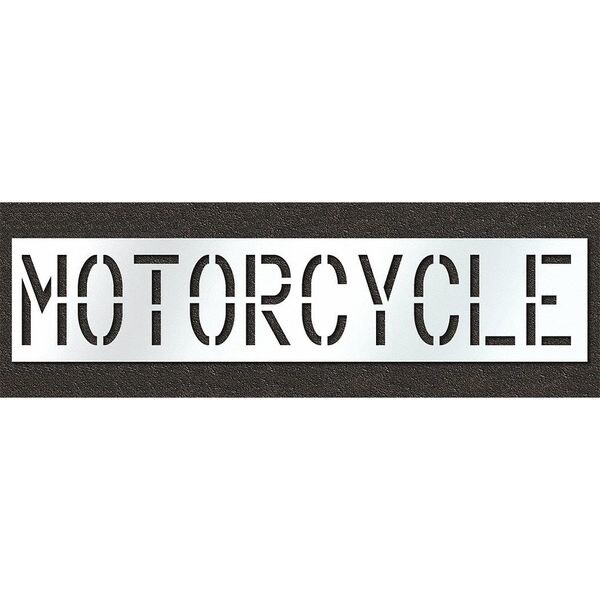Individual Stencil, Character Type Message, Duty Heavy, FAA AC 150/5340-1K Compliant No, Font Highway Gothic, Included Characters, Messages, and Symbols Motorcycle, Individual Character Height Not Applicable, Individual Character Width Not Applicable, Interlocking No, Interlocking Orientation Not Applicable, Material Polyethylene, Message or Symbol Height 18 in, Message or Symbol Width 108 in, Number of Pieces 1, Overall Stencil Height 24 in, Overall Stencil Thickness 0.125 in