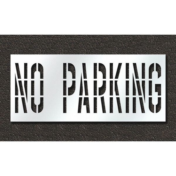Individual Stencil, Character Type Message, Duty Heavy, FAA AC 150/5340-1K Compliant No, Font Highway Gothic, Included Characters, Messages, and Symbols No Parking, Individual Character Height Not Applicable, Individual Character Width Not Applicable, Interlocking No, Interlocking Orientation Not Applicable, Material Polyethylene, Message or Symbol Height 36 in, Message or Symbol Width 105 in, Number of Pieces 1, Overall Stencil Height 48 in, Overall Stencil Thickness 0.125 in