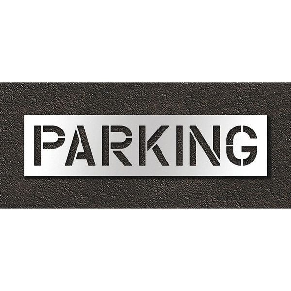 Individual Stencil, Character Type Message, Duty Heavy, FAA AC 150/5340-1K Compliant No, Font Highway Gothic, Included Characters, Messages, and Symbols Parking, Individual Character Height Not Applicable, Individual Character Width Not Applicable, Interlocking No, Interlocking Orientation Not Applicable, Material Polyethylene, Message or Symbol Height 12 in, Message or Symbol Width 66 in, Number of Pieces 1, Overall Stencil Height 18 in, Overall Stencil Thickness 0.125 in