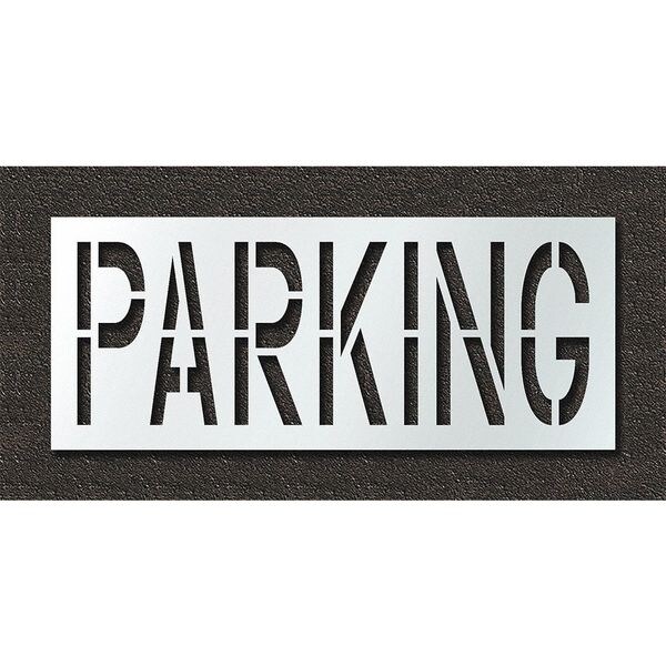 Individual Stencil, Character Type Message, Duty Heavy, FAA AC 150/5340-1K Compliant No, Font Highway Gothic, Included Characters, Messages, and Symbols Parking, Individual Character Height Not Applicable, Individual Character Width Not Applicable, Interlocking No, Interlocking Orientation Not Applicable, Material Polyethylene, Message or Symbol Height 24 in, Message or Symbol Width 66 in, Number of Pieces 1, Overall Stencil Height 30 in, Overall Stencil Thickness 0.125 in