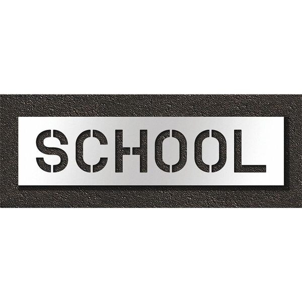 Individual Stencil, Character Type Message, Duty Heavy, FAA AC 150/5340-1K Compliant No, Font Highway Gothic, Included Characters, Messages, and Symbols School, Individual Character Height Not Applicable, Individual Character Width Not Applicable, Interlocking No, Interlocking Orientation Not Applicable, Material Polyethylene, Message or Symbol Height 10 in, Message or Symbol Width 54 in, Number of Pieces 1, Overall Stencil Height 16 in, Overall Stencil Thickness 0.125 in