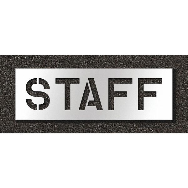 Individual Stencil, Character Type Message, Duty Heavy, FAA AC 150/5340-1K Compliant No, Font Highway Gothic, Included Characters, Messages, and Symbols Staff, Individual Character Height Not Applicable, Individual Character Width Not Applicable, Interlocking No, Interlocking Orientation Not Applicable, Material Polyethylene, Message or Symbol Height 10 in, Message or Symbol Width 42 in, Number of Pieces 1, Overall Stencil Height 16 in, Overall Stencil Thickness 0.125 in