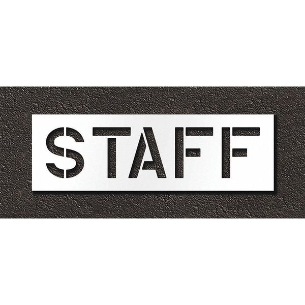 Individual Stencil, Character Type Message, Duty Heavy, FAA AC 150/5340-1K Compliant No, Font Highway Gothic, Included Characters, Messages, and Symbols Staff, Individual Character Height Not Applicable, Individual Character Width Not Applicable, Interlocking No, Interlocking Orientation Not Applicable, Material Polyethylene, Message or Symbol Height 12 in, Message or Symbol Width 50 in, Number of Pieces 1, Overall Stencil Height 18 in, Overall Stencil Thickness 0.125 in