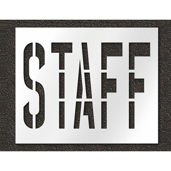 Individual Stencil, Character Type Message, Duty Heavy, FAA AC 150/5340-1K Compliant No, Font Highway Gothic, Included Characters, Messages, and Symbols Staff, Individual Character Height Not Applicable, Individual Character Width Not Applicable, Interlocking No, Interlocking Orientation Not Applicable, Material Polyethylene, Message or Symbol Height 36 in, Message or Symbol Width 53 in, Number of Pieces 1, Overall Stencil Height 48 in, Overall Stencil Thickness 0.125 in