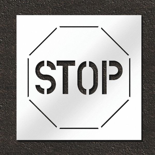 Individual Stencil, Character Type Message/Symbol Set, Duty Heavy, FAA AC 150/5340-1K Compliant No, Included Characters, Messages, and Symbols Stop, Individual Character Height Not Applicable, Individual Character Width Not Applicable, Interlocking No, Interlocking Orientation Not Applicable, Material Low Density Polyethylene (LDPE), Message or Symbol Height 30 in, Message or Symbol Width 30 in, Number of Pieces 1, Overall Stencil Height 36 in, Overall Stencil Thickness 0.125 in