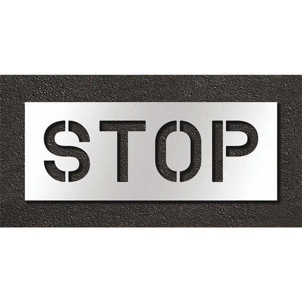 Individual Stencil, Character Type Message, Duty Heavy, FAA AC 150/5340-1K Compliant No, Font Highway Gothic, Included Characters, Messages, and Symbols Stop, Individual Character Height Not Applicable, Individual Character Width Not Applicable, Interlocking No, Interlocking Orientation Not Applicable, Material Polyethylene, Message or Symbol Height 10 in, Message or Symbol Width 35 in, Number of Pieces 1, Overall Stencil Height 16 in, Overall Stencil Thickness 0.125 in