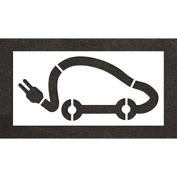 Pavement Stencil, Symbol, Electric Car Logo, 48 in Character Height, Not Applicable Font, White