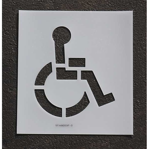 Individual Stencil, Character Type Symbol, Duty Heavy, FAA AC 150/5340-1K Compliant No, Font Not Applicable, Included Characters, Messages, and Symbols Handicap, Individual Character Height Not Applicable, Individual Character Width Not Applicable, Interlocking No, Interlocking Orientation Not Applicable, Material Polyethylene, Message or Symbol Height 15 in, Message or Symbol Width 14 in, Number of Pieces 1, Overall Stencil Height 27 in, Overall Stencil Thickness 0.125 in