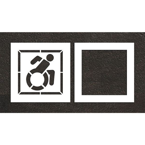 Individual Stencil, Character Type Symbol, Duty Heavy, FAA AC 150/5340-1K Compliant No, Font Not Applicable, Included Characters, Messages, and Symbols Handicap, Individual Character Height Not Applicable, Individual Character Width Not Applicable, Interlocking No, Interlocking Orientation Not Applicable, Material Low Density Polyethylene (LDPE), Message or Symbol Height 24 in, Message or Symbol Width 24 in, Number of Pieces 2, Overall Stencil Height 32 in, Overall Stencil Thickness 0.125 in